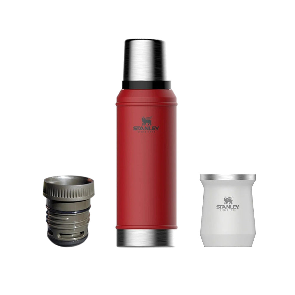 Clásico termo de Stanley 600 ml de capacidad + mate fabricados en SS (stainless steel) resistente a la corrosión y libre de BPA.